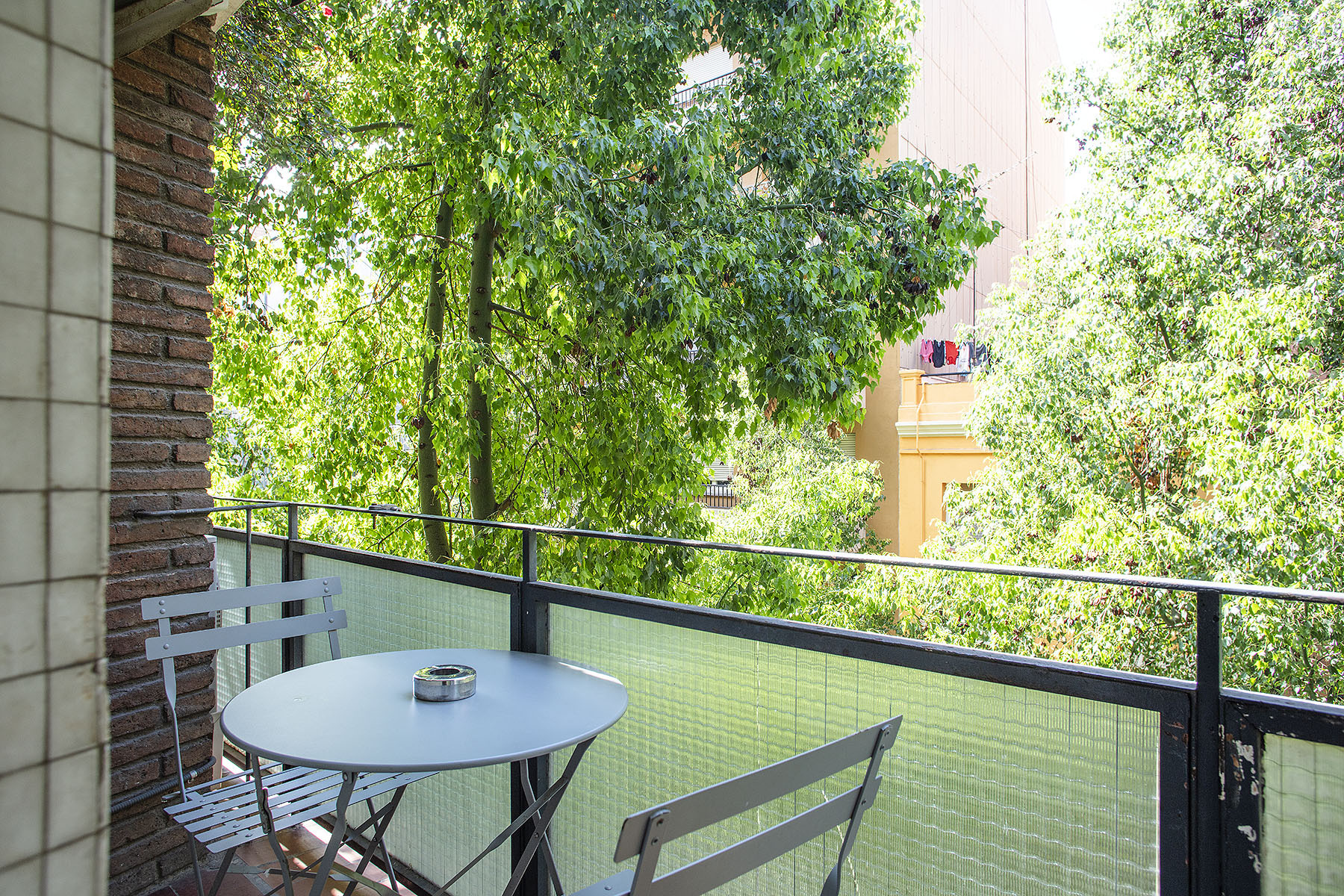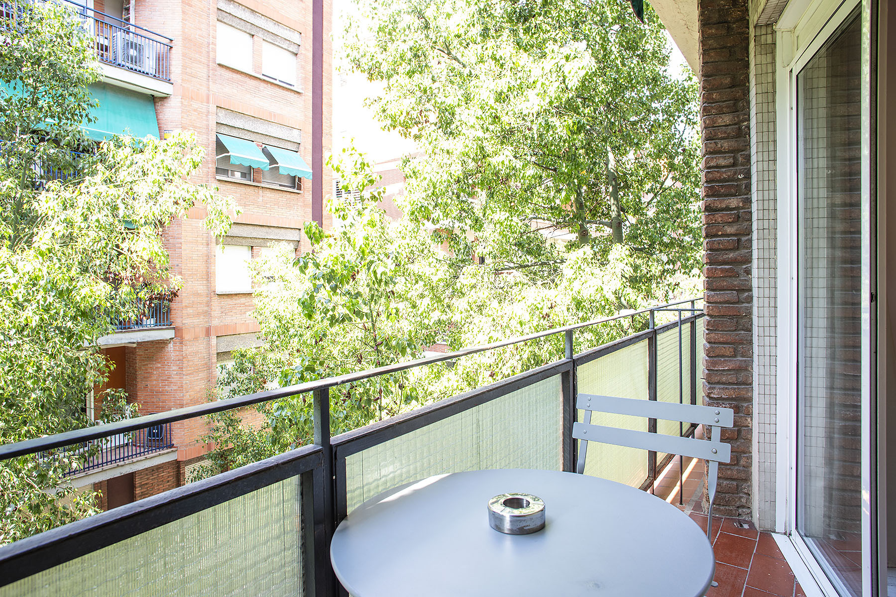 Está ubicado en el barrio de Les Corts, una zona residencial bastante tranquila, con todos los servicios que pueda necesitar: supermercados, bares, restaurantes, etc. También está muy bien conectado con metro a las principales atracciones turísticas y el centro de la ciudad.