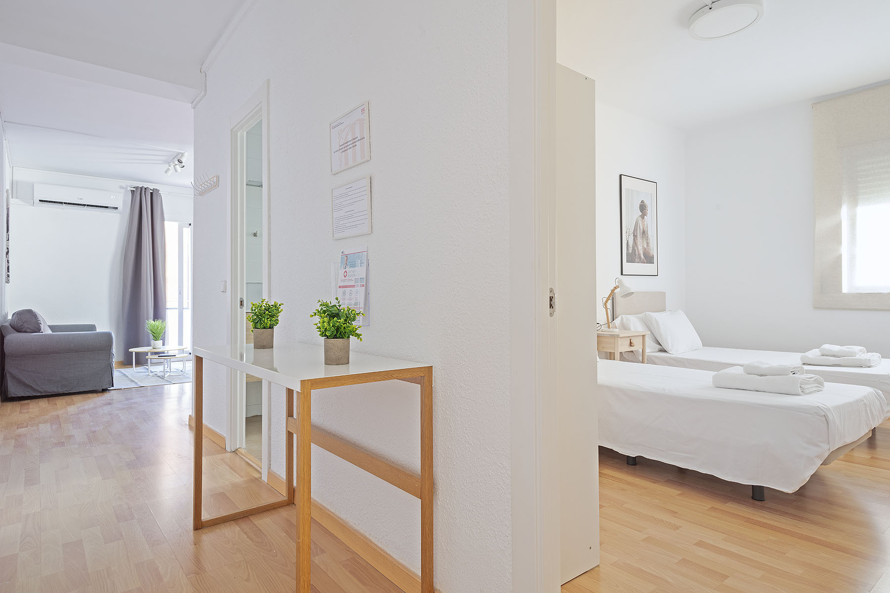 The apartment has space to accommodate up to 4 people in two rooms, one with a double bed and another with two single beds. Perfect for a family trip, for two couples, for small groups of friends or for colleagues on business trips.